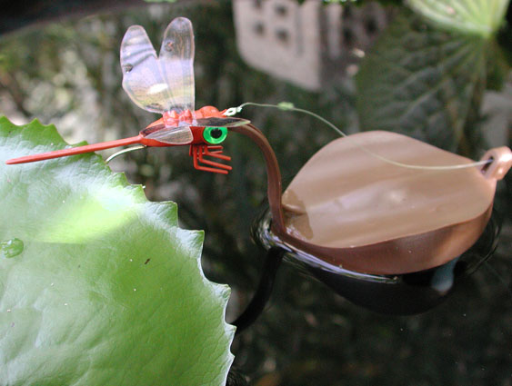 完成形は、奇妙なブイに小さなステムが突き出し、そこにプラスチック製トンボがぶら下がる姿となります。