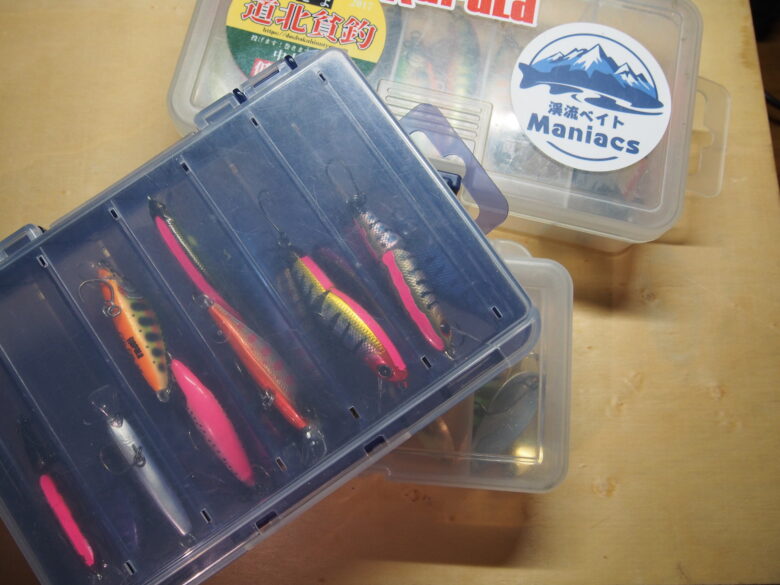 こちらはストックのルアーを整理するときに使いますが、他にも本流や湖などで少し大きめのルアーを使う場合に持っていくことが多いです。