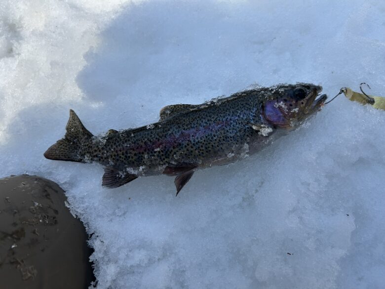 ここ数日の間に一気に雪解けが進み入渓可能な場所が増えてきたので我慢できずに釣りに行ってきました。釣果は小虹様ばかりなのと大場所がまだ雪で空いて無かったりするので厳しいですが、もう少し雪解けがすすめば本格的な渓流解禁になりそうです。